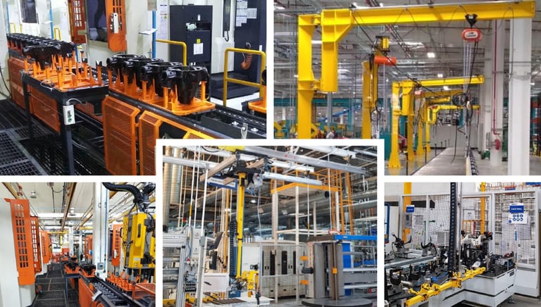 • Ingeniería para soluciones industriales (Implementaciones especiales como manipuladores cero gravedad, conveyors, grúas bandera, grúas viajeras y transportadores)